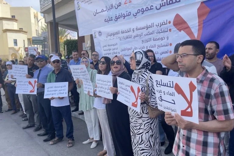 وأضاف لعشير، ضمن تصريح صحافي، أن “المكتب الوطني للماء والكهرباء مؤسسة عمومية رائدة في تدبير القطاع سيتم إلغاؤها والتراجع عنها، ما سيؤثّر بشكل مباشر على فاتورة المواطن”، واصفاً التعريفة التي يؤديها المغاربة حالياً مقابل الماء الصالح للشرب بـ”الاجتماعية”.