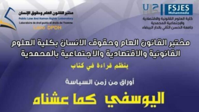 في إطار الأنشطة الأكاديمية المميزة التي تحتضنها كلية العلوم القانونية والاقتصادية والاجتماعية بالمحمدية، أعلن مختبر القانون العام وحقوق الإنسان عن تنظيم ندوة علمية تحت عنوان “أوراق من زمن السياسة: اليوسفي كما عشناه”. الندوة تأتي كقراءة معمقة في كتاب يحمل نفس العنوان، مستعرضةً شهادات حية وتجارب شخصية عن السياسي المغربي البارز عبد الرحمن اليوسفي.